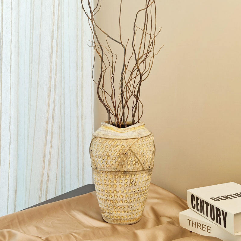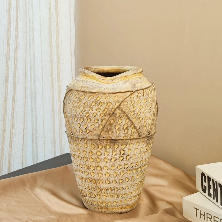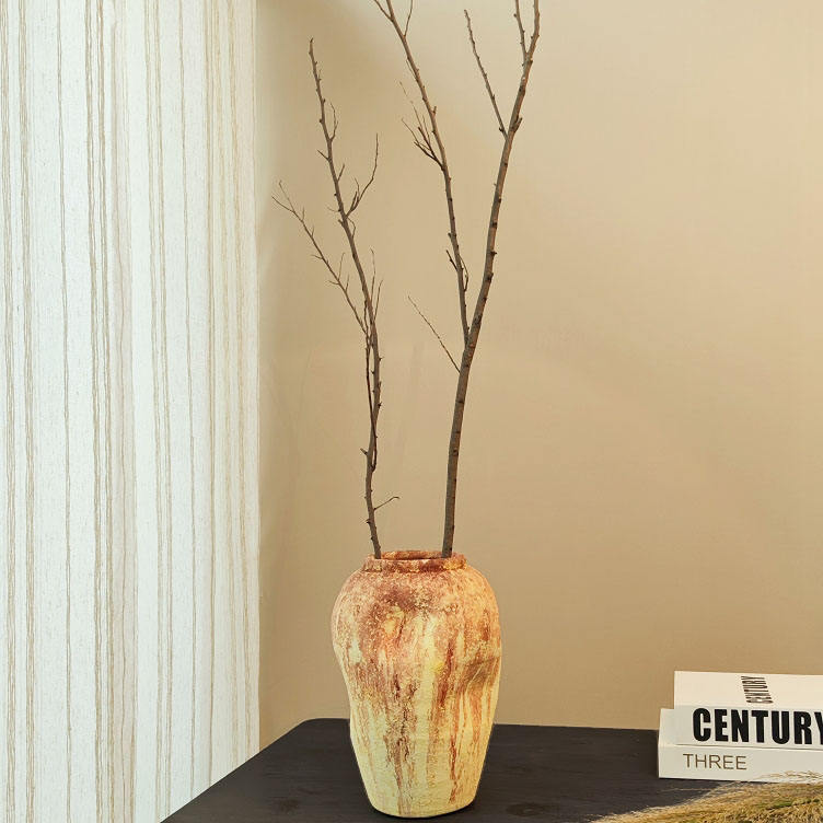 Vaso da fiori artigianale in gres smaltato stile retrò con bocca irregolare a forma di pancia grande, per balcone, giardino e casa
