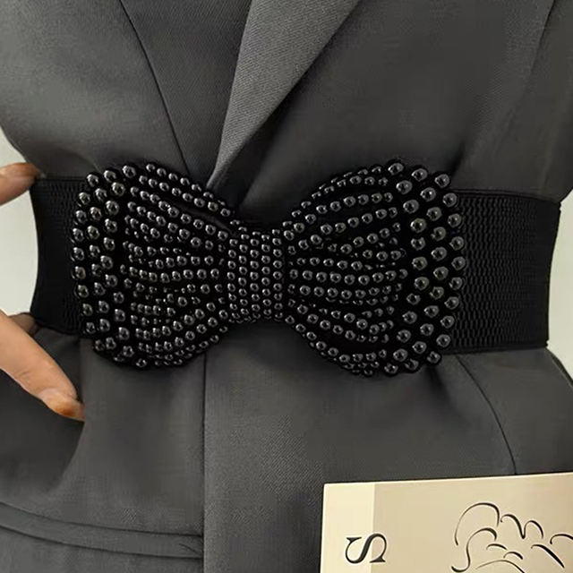 Cintura elastica con fiocco grande perla nera per abito da donna con tre taglie