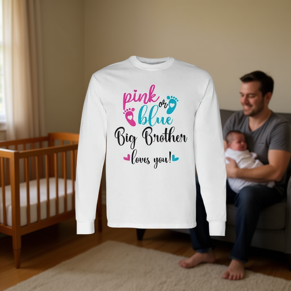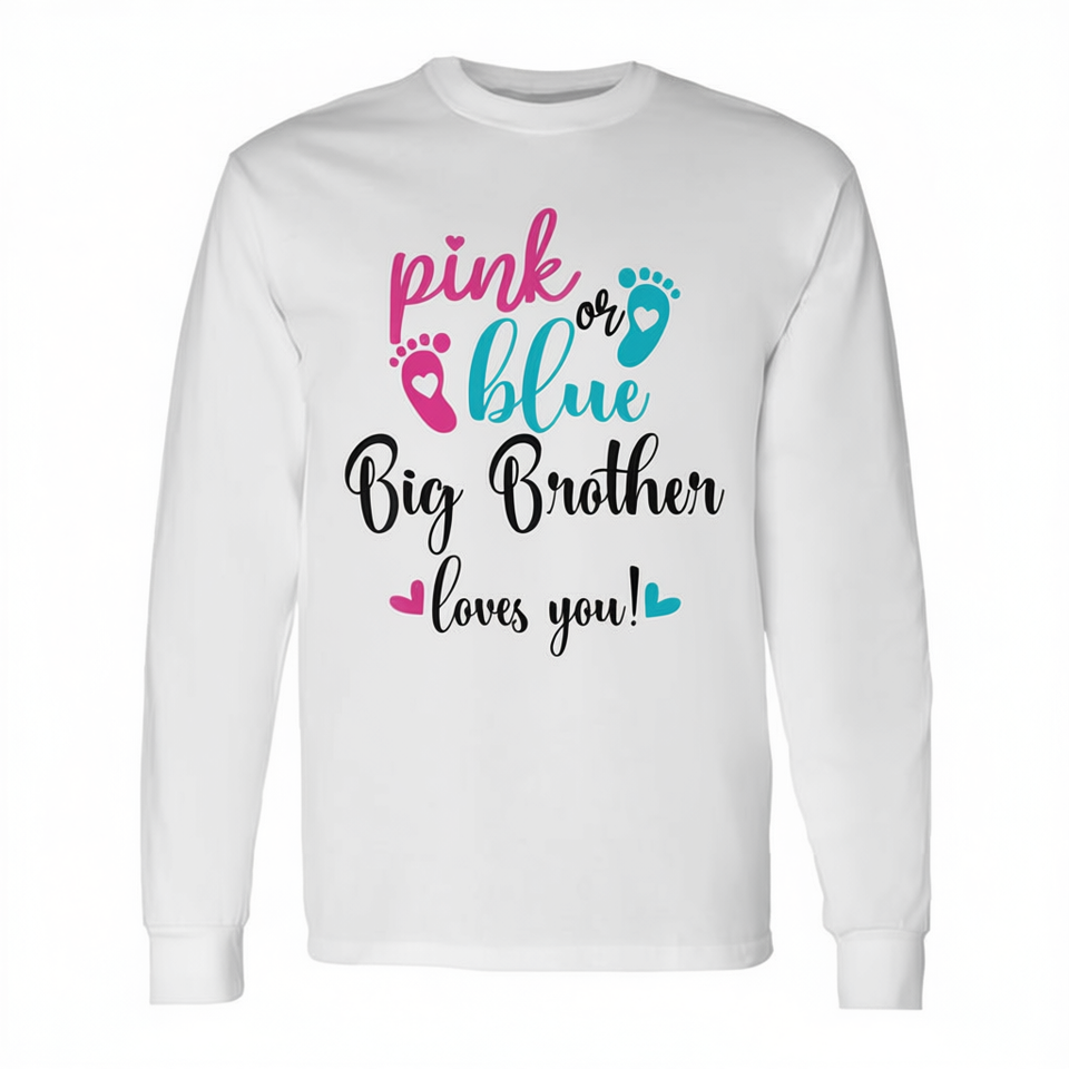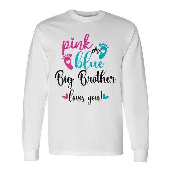 Maglietta a maniche lunghe per neonati con scritta 'Big Brother Loves You' in rosa o blu per la rivelazione del sesso