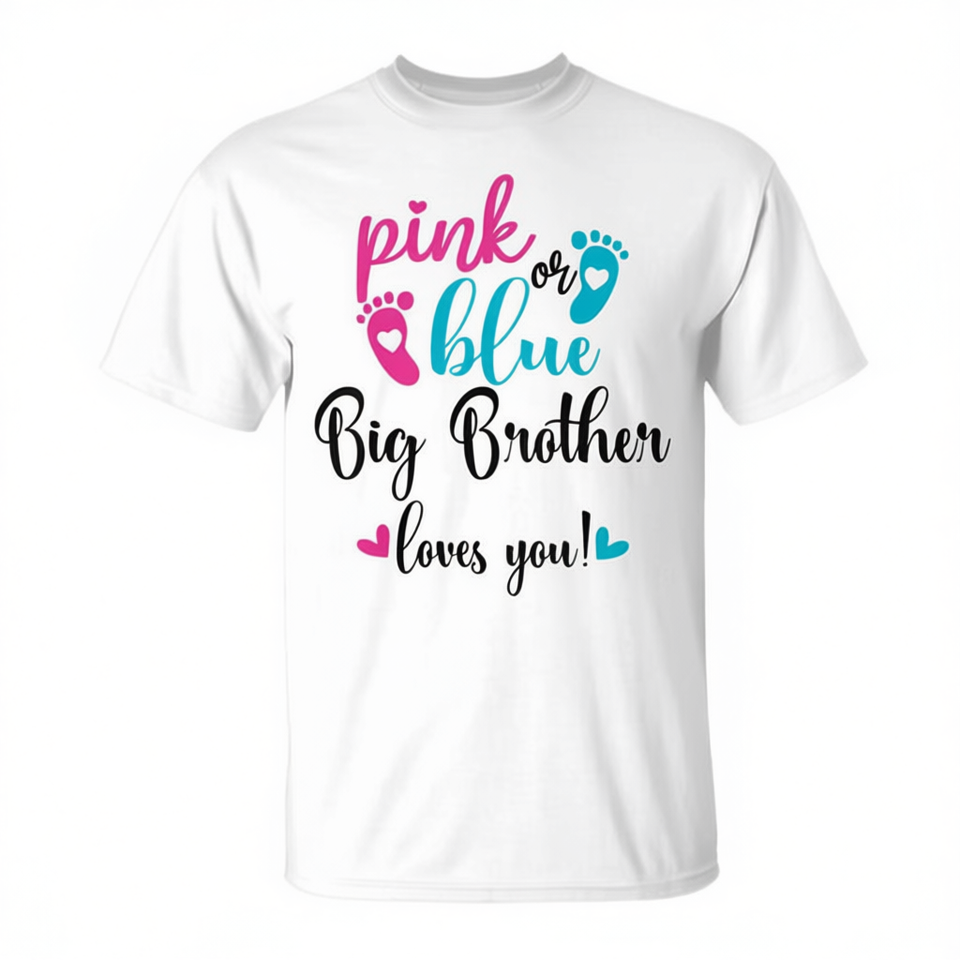 Maglietta Promozionale Personalizzabile per Rivelazione del Sesso del Bambino: 'Big Brother Ti Ama' in Rosa o Blu