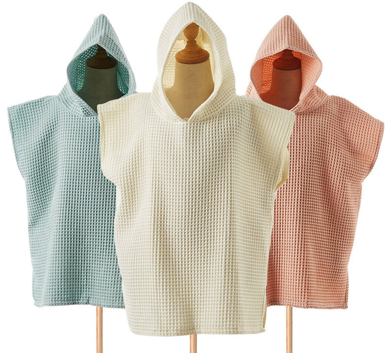 Grande cappuccio cambio abito quattro stagioni bagno bambino asciugamano indossabile 100% Waffle in cotone morbido manica corta per bambini Poncho asciugamano da spiaggia