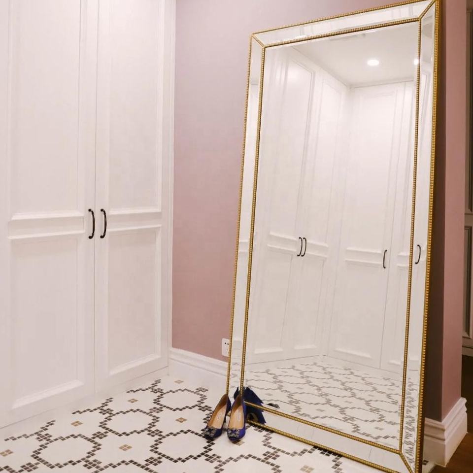 Grande Specchio di Lusso con Cornice Smussata, Appendiabiti Decorativo, Specchio da Terra Rettangolare Anticato Dorato per Soggiorno