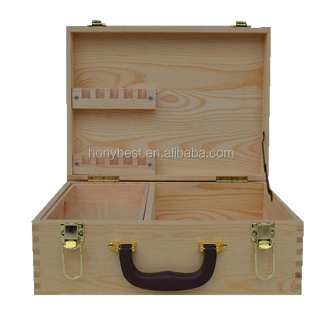 Valigia in Legno di Pino Grande, Scatola da Viaggio Portatile, Contenitore per Attrezzi, Scatola in Legno Non Rifinito con Manico/Divisorio/Coperchio con Cerniera