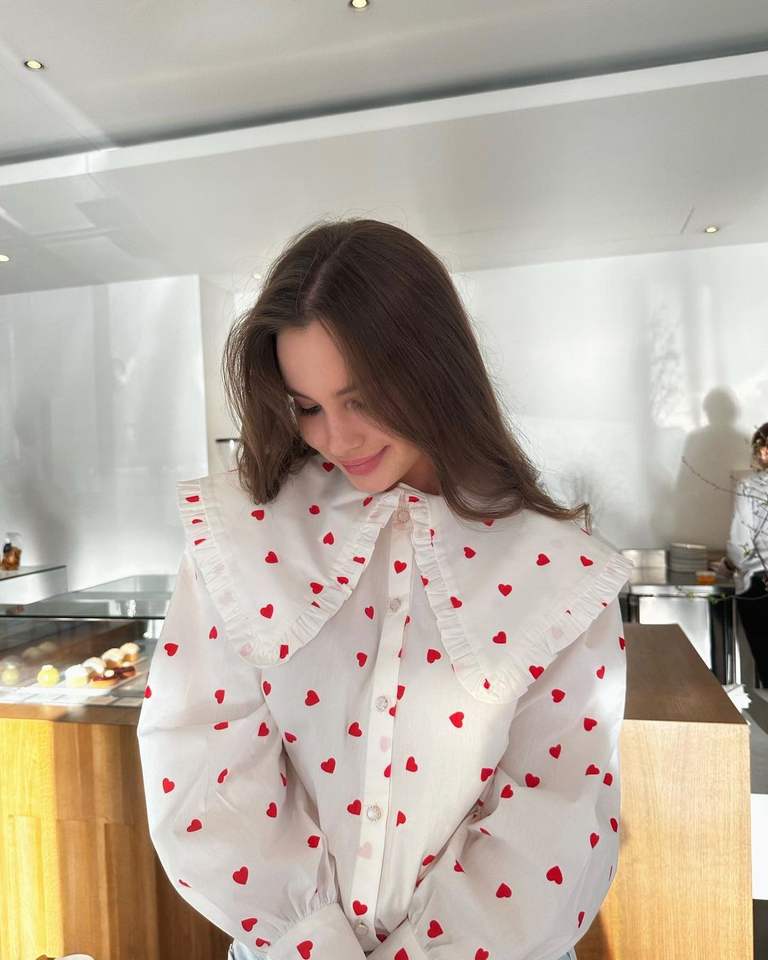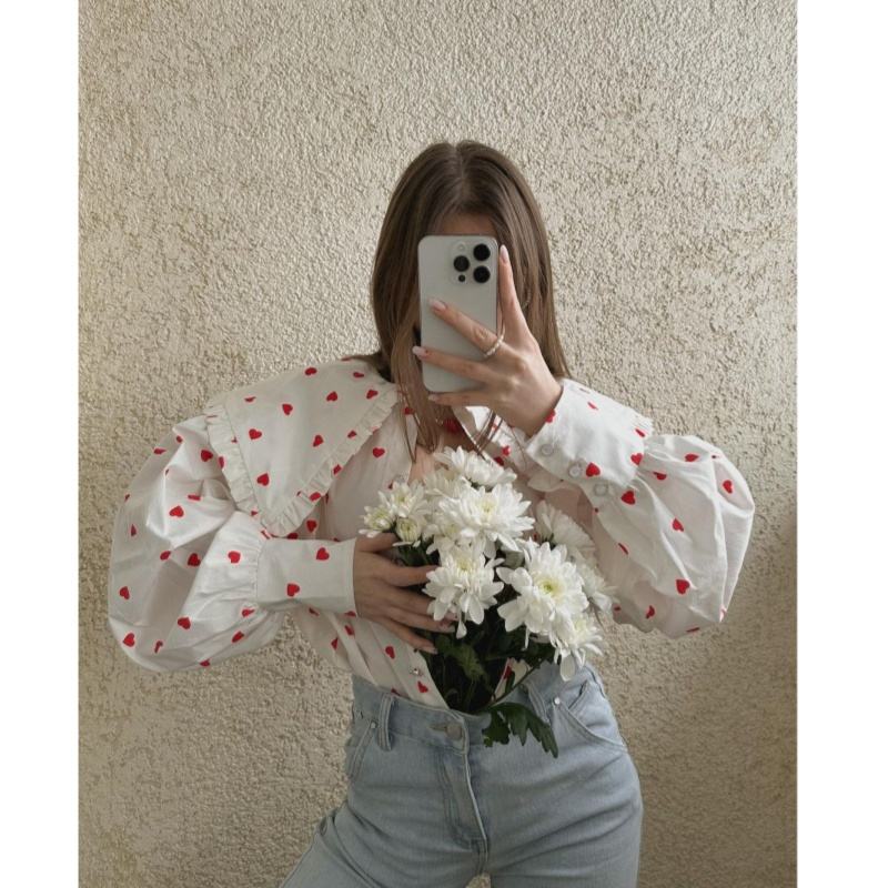 Camicie da donna con collo a marinaio grande con volant a manica lunga con stampa a cuore camicie di cotone top da donna primavera estate
