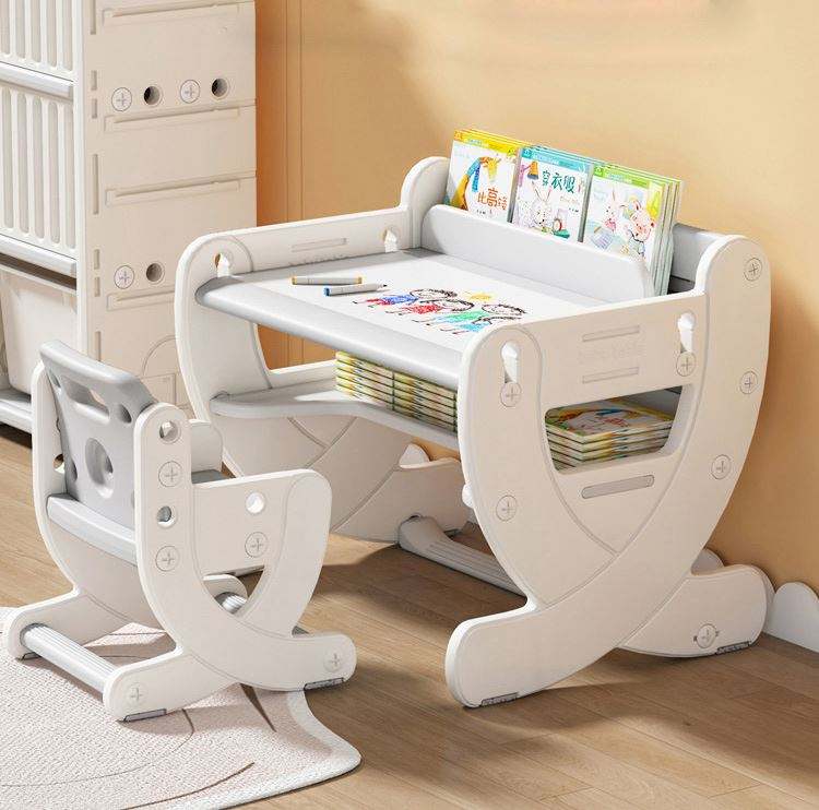 Tavolo e sedia per bambini di grandi dimensioni set di mobili per l'asilo nido per bambini tavoli e sedie per l'apprendimento con tavola bianca per bambini in plastica
