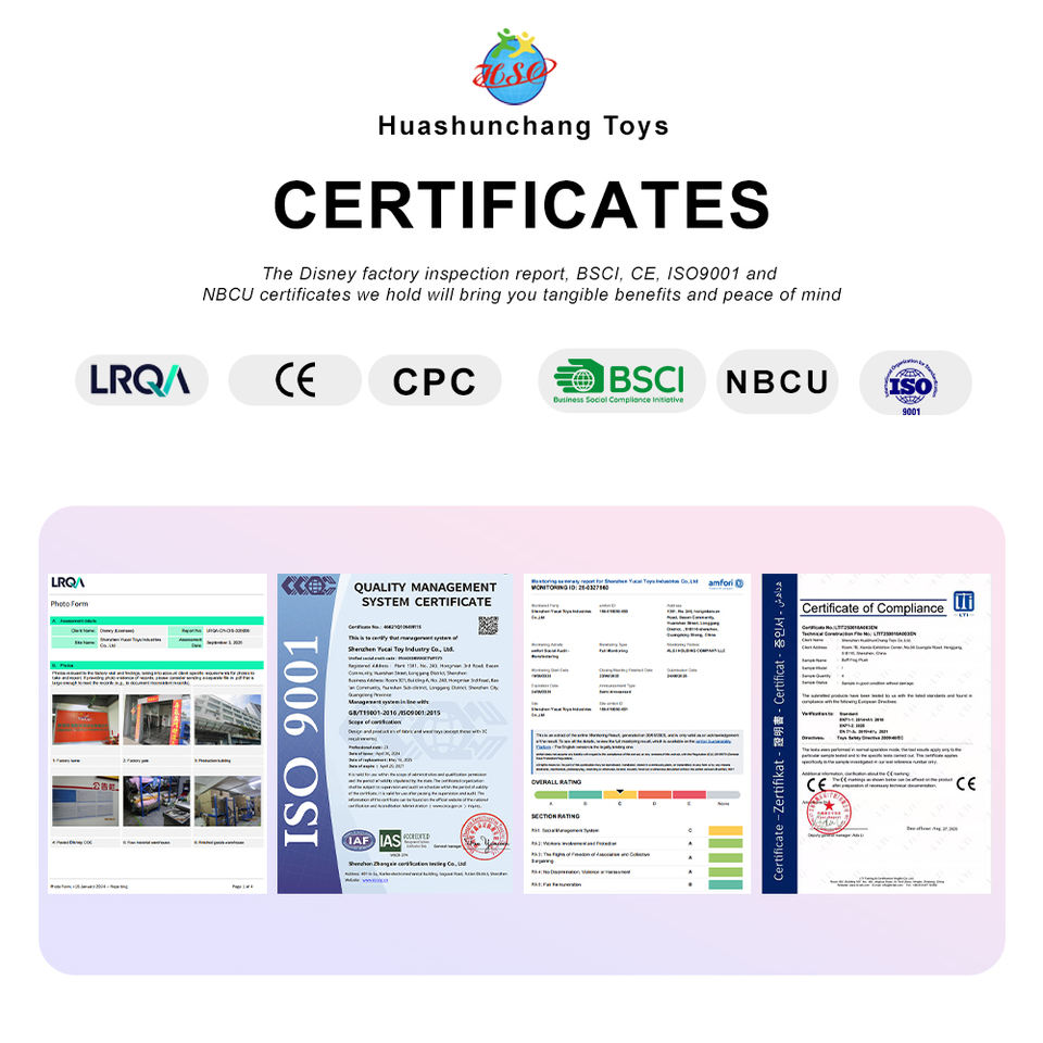 ISO9001/BSCI/NBCU/EN71 / CE / ASTM,
