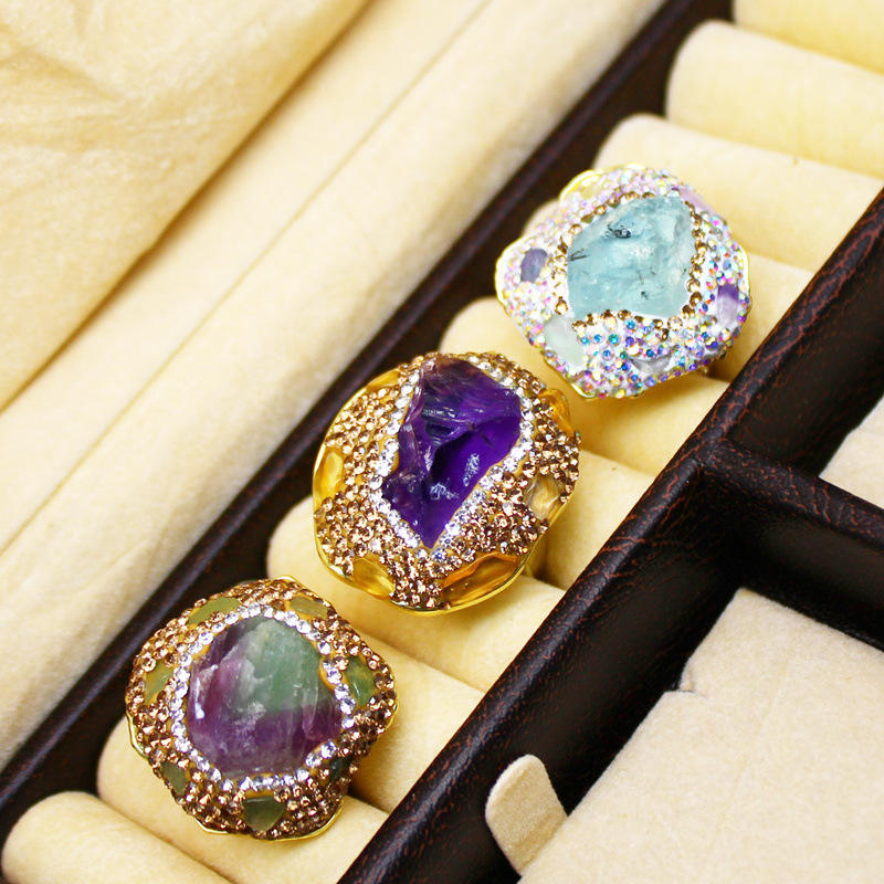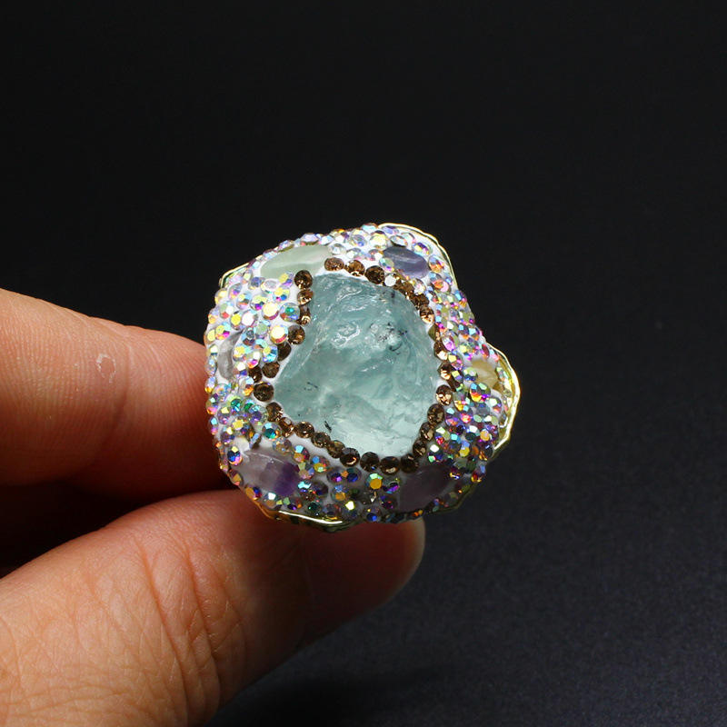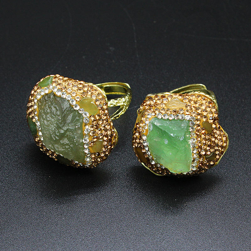 Anello con Grande Pietra Stile Vintage Placcato Oro 18K con Gemme e Quarzo per Uomo e Donna Matrimonio Fidanzamento Vendita all'Ingrosso