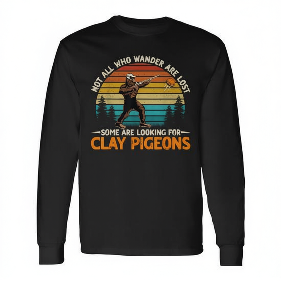 Maglietta a Maniche Lunghe in Cotone Bigfoot Clay Trap Shooting Retro, Accessori per Tiro al Bersaglio all'Aperto
