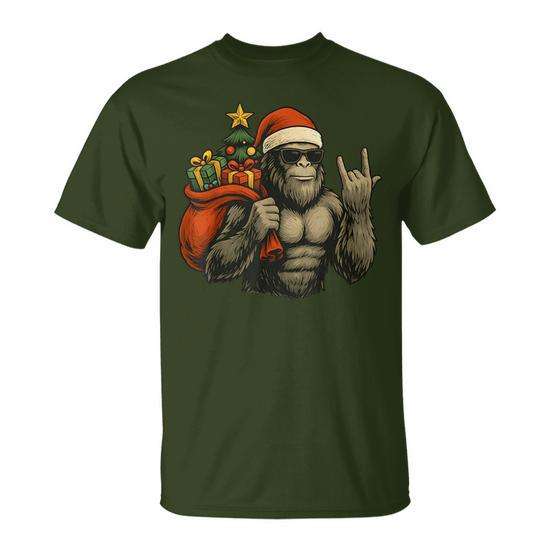 Maglietta Bigfoot Santa Christmas Tree Rock On Xmas Sasquatch