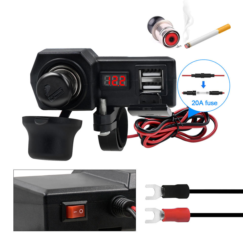 Nome del prodotto:Presa USB doppia per moto con voltmetro+accendisigari