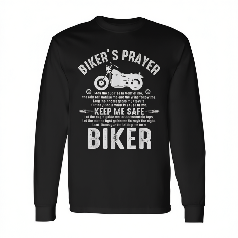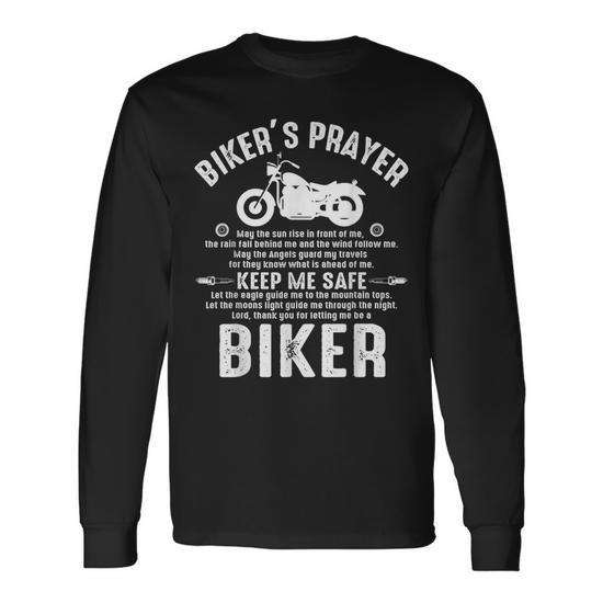 T-shirt a maniche lunghe Biker's Prayer con design vintage da motociclista per gli appassionati di motociclismo