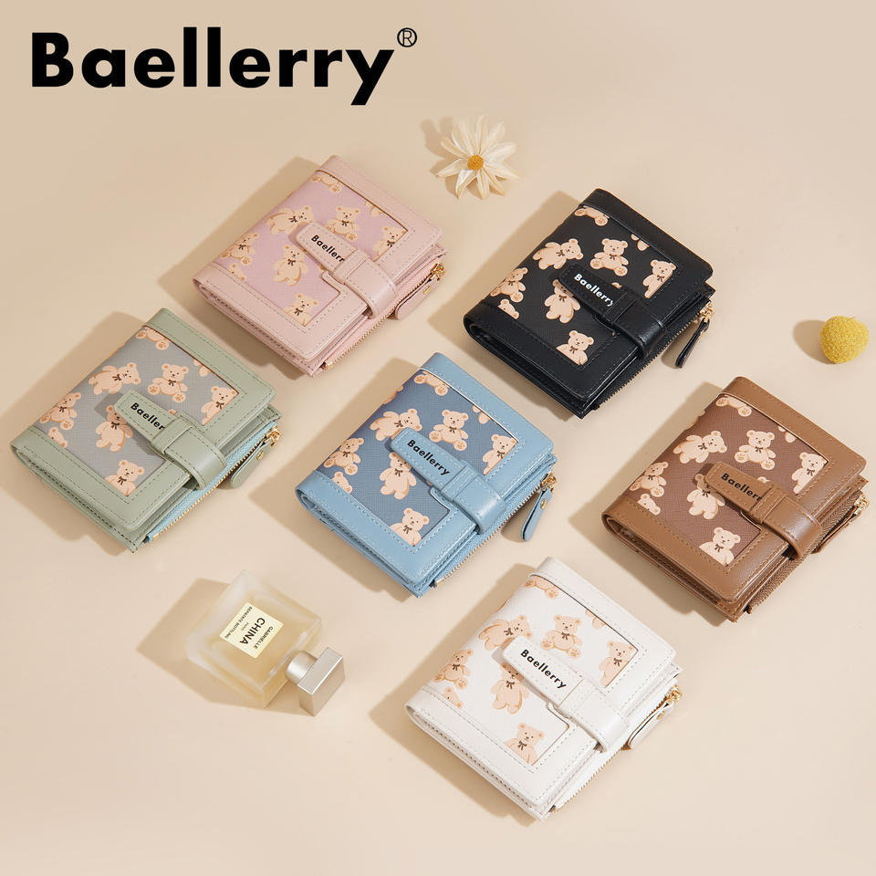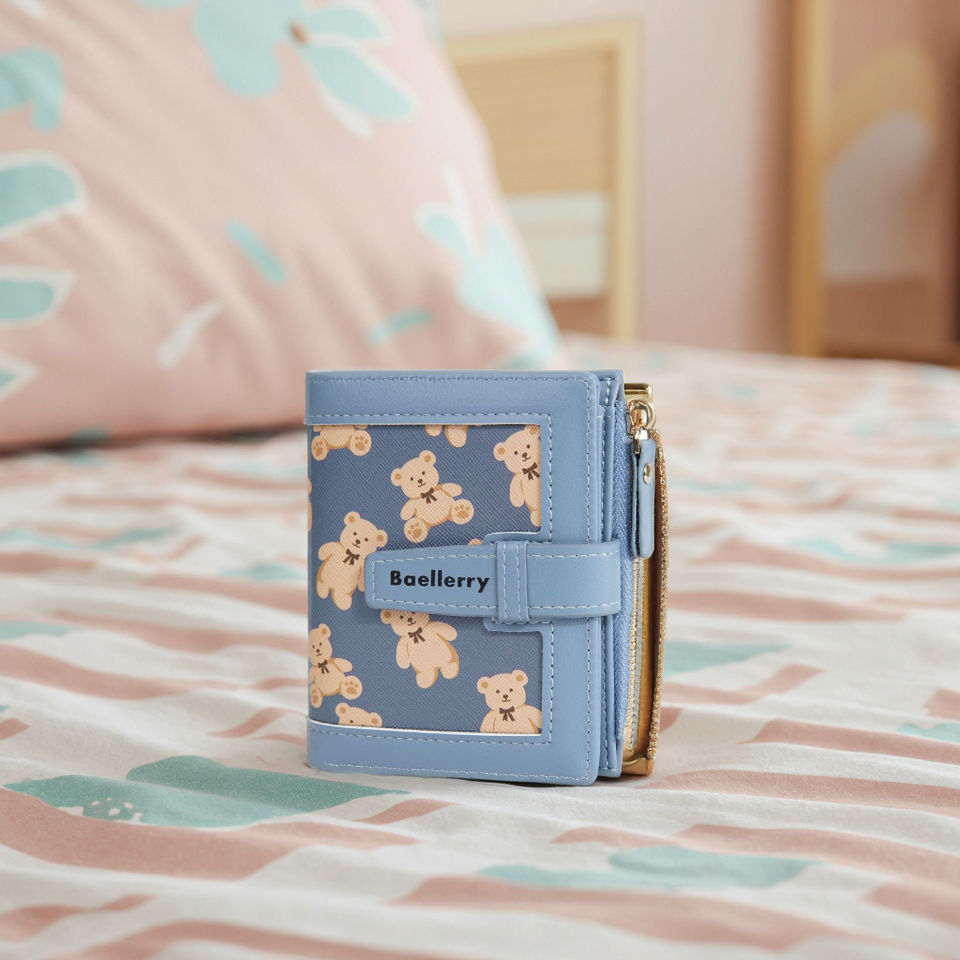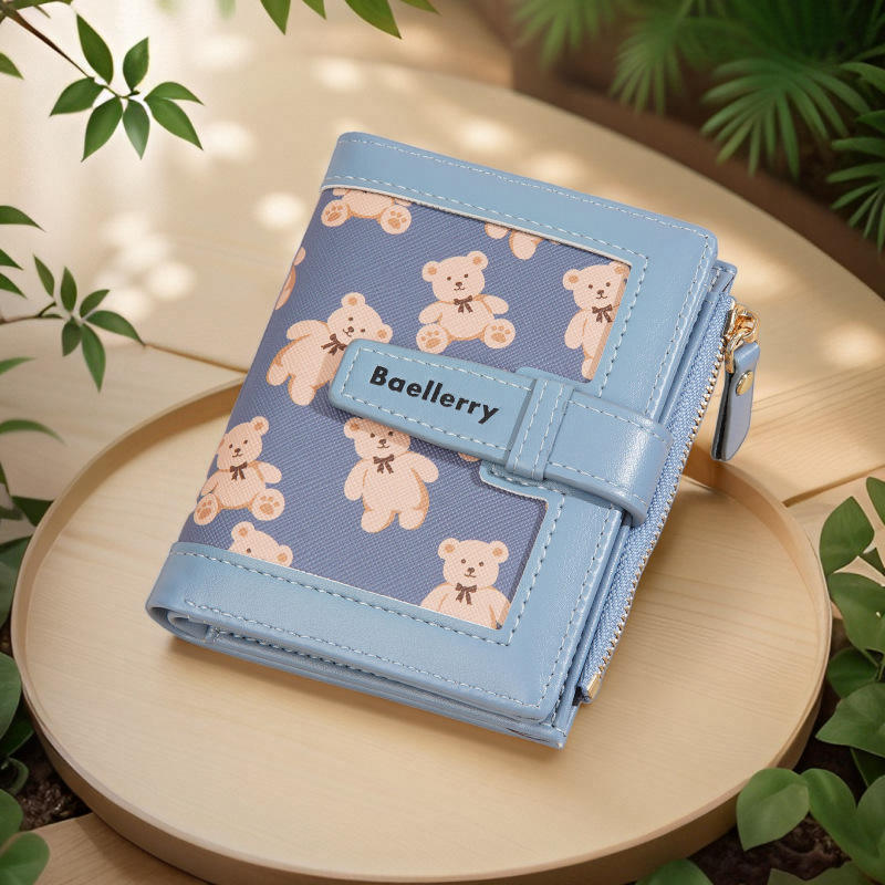 Billetera Rfid Cuero Mujer Dama Custom logo Pu in pelle Mini portafoglio per carte carino con stampa orso rosa di fascia alta portafoglio per ragazze di lusso 2025