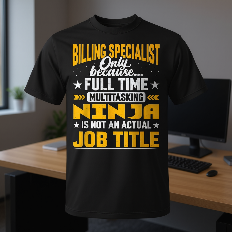 T-shirt per specialiste delle fatture, design divertente con titolo di ruolo 'Ninja Multitasking' per posizioni a tempo pieno