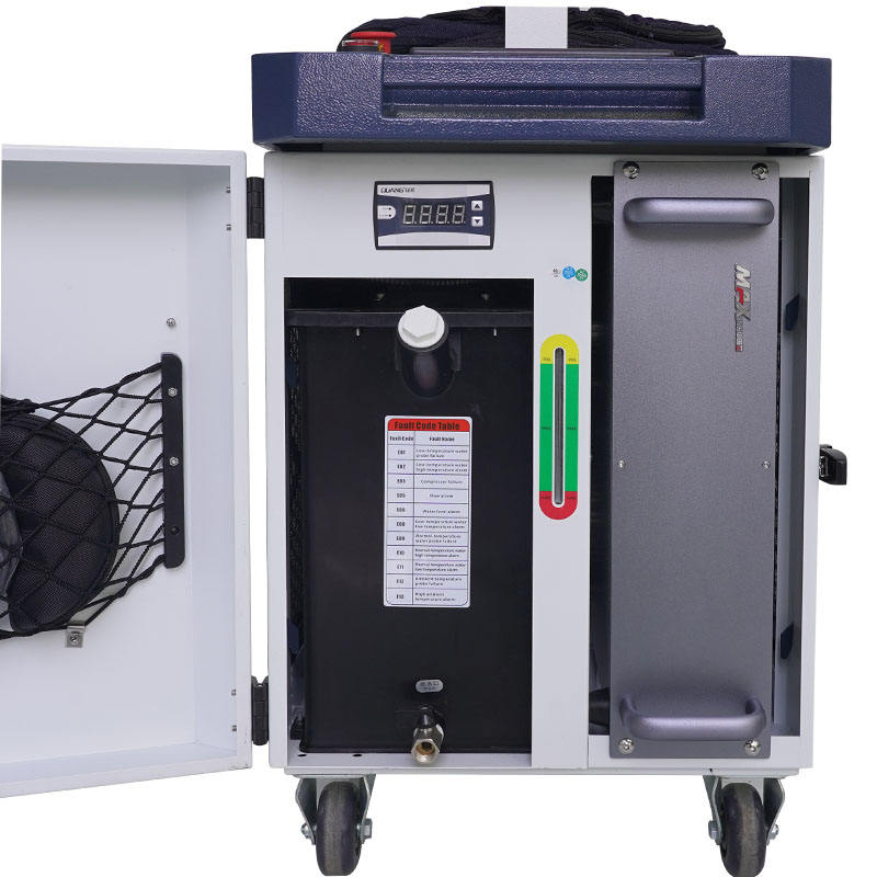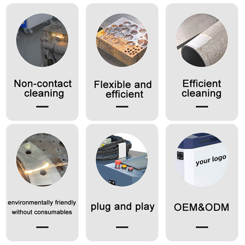 Sorgente laser a fibra: Garantisce alta precisione ed efficienza nella pulizia, adatta a una vasta gamma di materiali, compresi metalli e vetro.