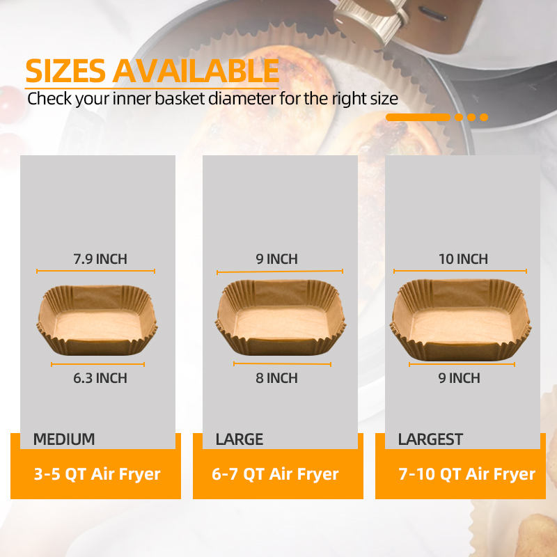Resistente al forno fino a 450°F: Garantisce che la carta per friggitrice ad aria possa resistere a temperature elevate, rendendola adatta a varie applicazioni di cottura e forno.