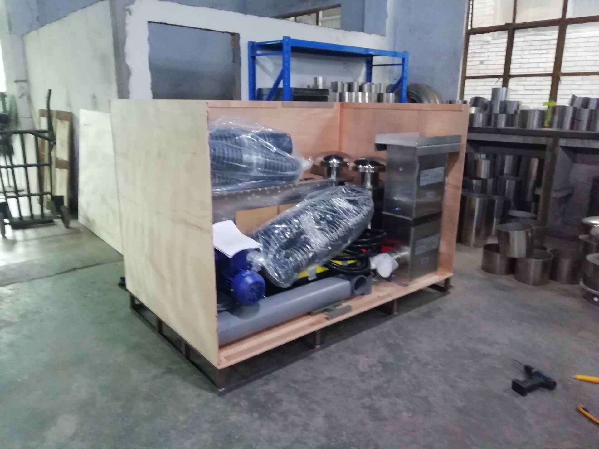 Biogas holder packed in plywood cases