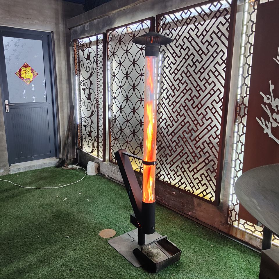 Biomass Rocket Stove Patio Wood Pellet Heater Fireplaces Fire Column Pellet Torch Outdoor Steel Construction Minimalist Design
