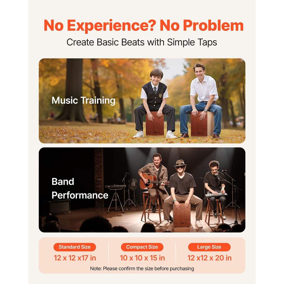 Cajon in Legno di Betulla, Strumento a Percussione con Corde per Rullante e Grancassa