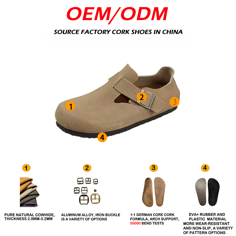 Birkenstocks Unisex Cowhide Cork Slippers Anti-Slip Waterproof Breathable Sandals Anatomical Foot Bed Insole Spring Summer