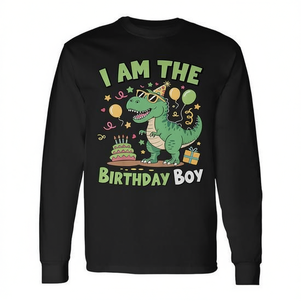 Maglietta a Maniche Lunghe per Bambini con T-Rex Dinosauro e Famiglia, Prodotto Promozionale per Compleanno
