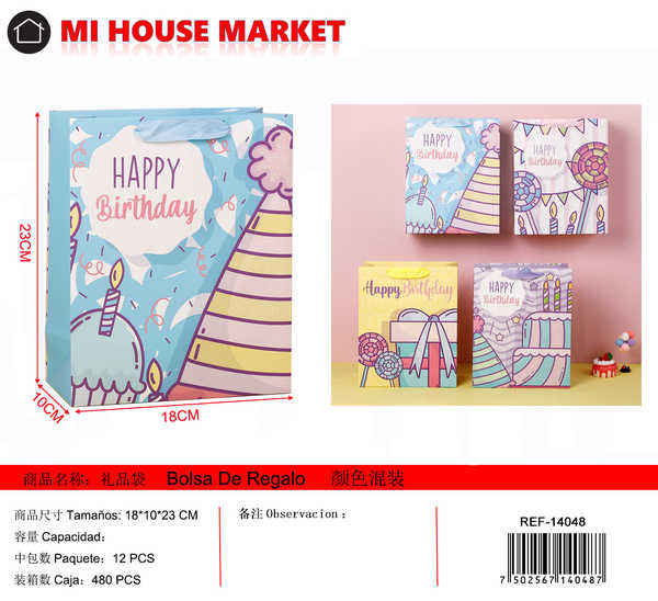 Sacchetto Regalo di Compleanno in Carta Stampata a 4 Colori per Feste