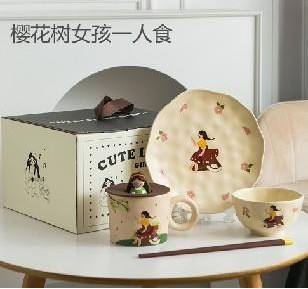 Set di scatole regalo di compleanno in ceramica porcellana Ramen zuppa Vintage cibo ciotola tè tazza di caffè e piatto con bacchette per le donne della ragazza