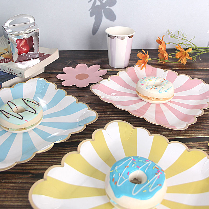 Feste di compleanno Golden Stripe quadrati piatti di carta usa e getta per tutte le occasioni piatti di carta usa e getta forniture per feste