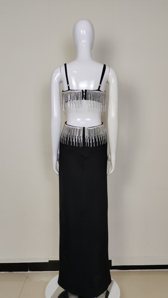 Birthday Party Dress Evening Party Dresses Sexy Black Tassel Backless Women Long Party Evening Dress