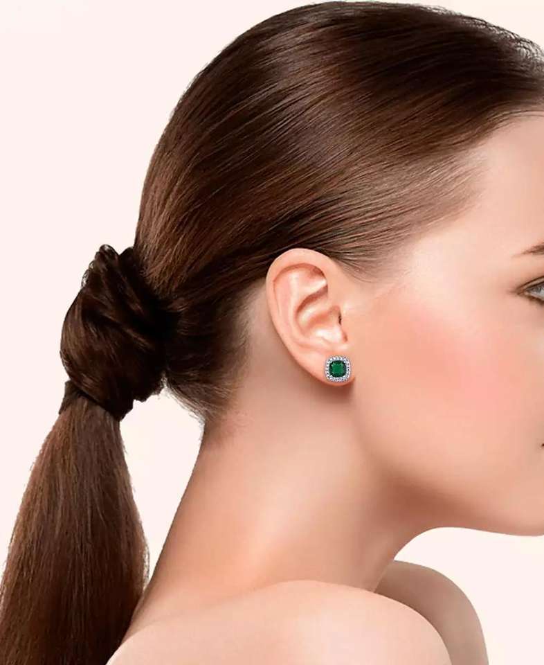 Birthstone Cushion Halo Solitaire Stud Earrings in Silver Plate | Macy's