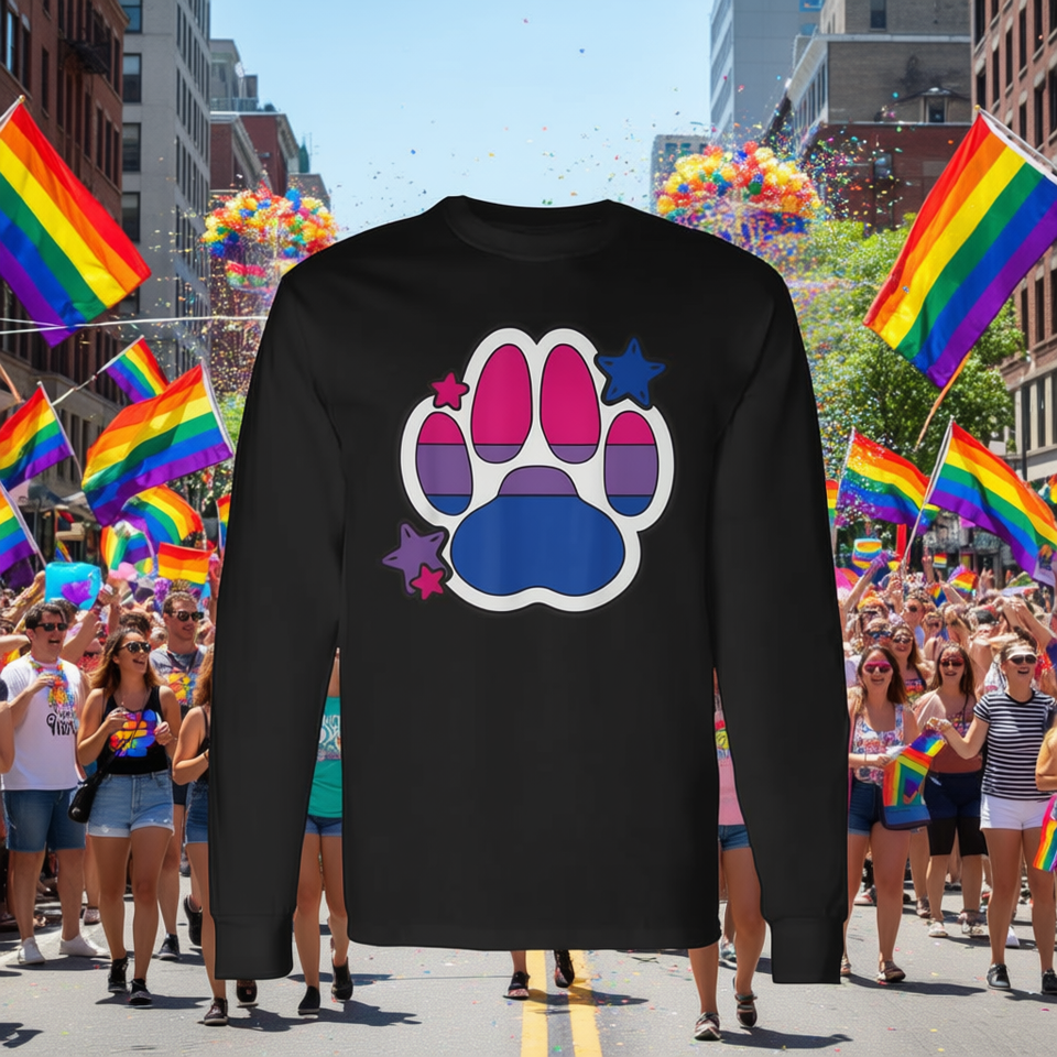 Maglietta Unisex a Maniche Lunghe con Stampa Digitale 'Paw Pride' per Uso Promozionale, Mese LGBTQ, Diritti Gay
