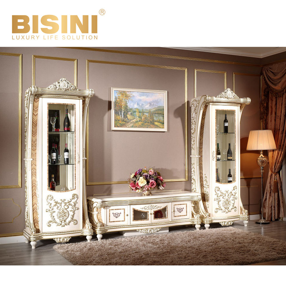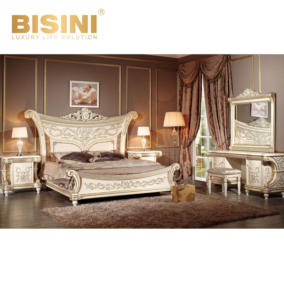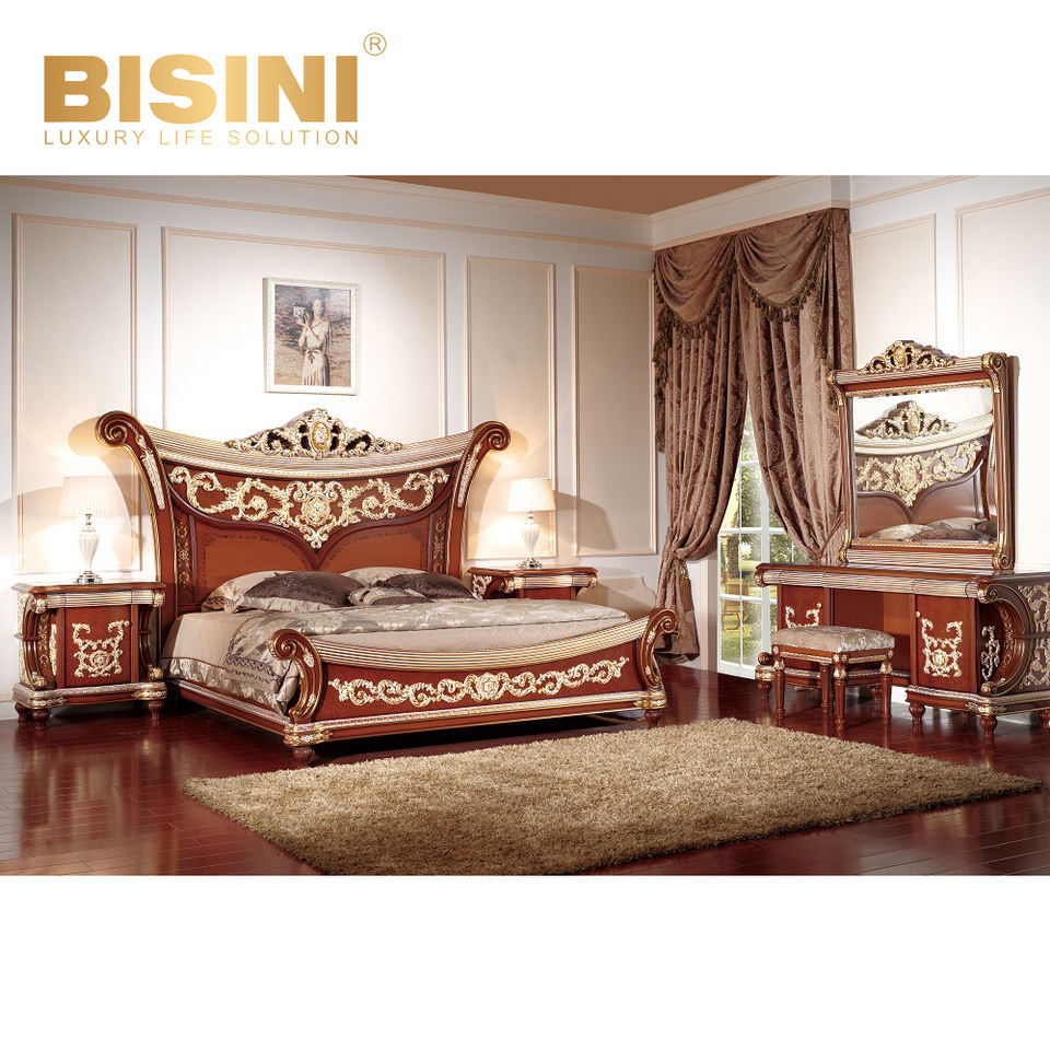Set da Pranzo Europeo Personalizzato in Stile Barocco Bisini con Tavolo Allungabile in Legno Massello e Sedie in Tessuto con Rilievi Intagliati a Mano