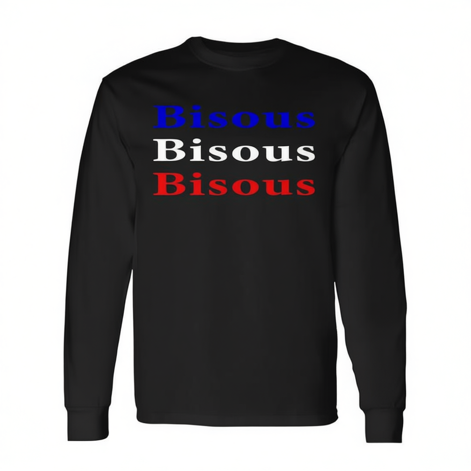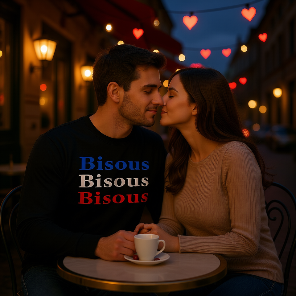 T-shirt a maniche lunghe Bisous French Kisses per San Valentino, per coppie, di alta qualità