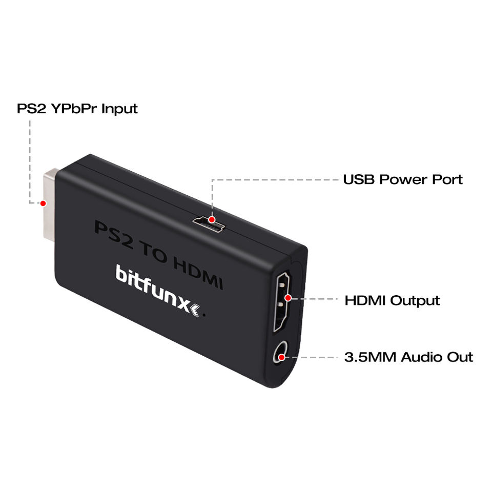 Adattatore convertitore Bitfunx Video e Audio (YPbPr) da PS2 a HDM compatibile per PlayStation2 Console di gioco PS2