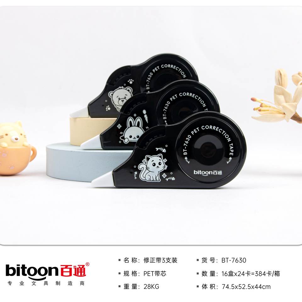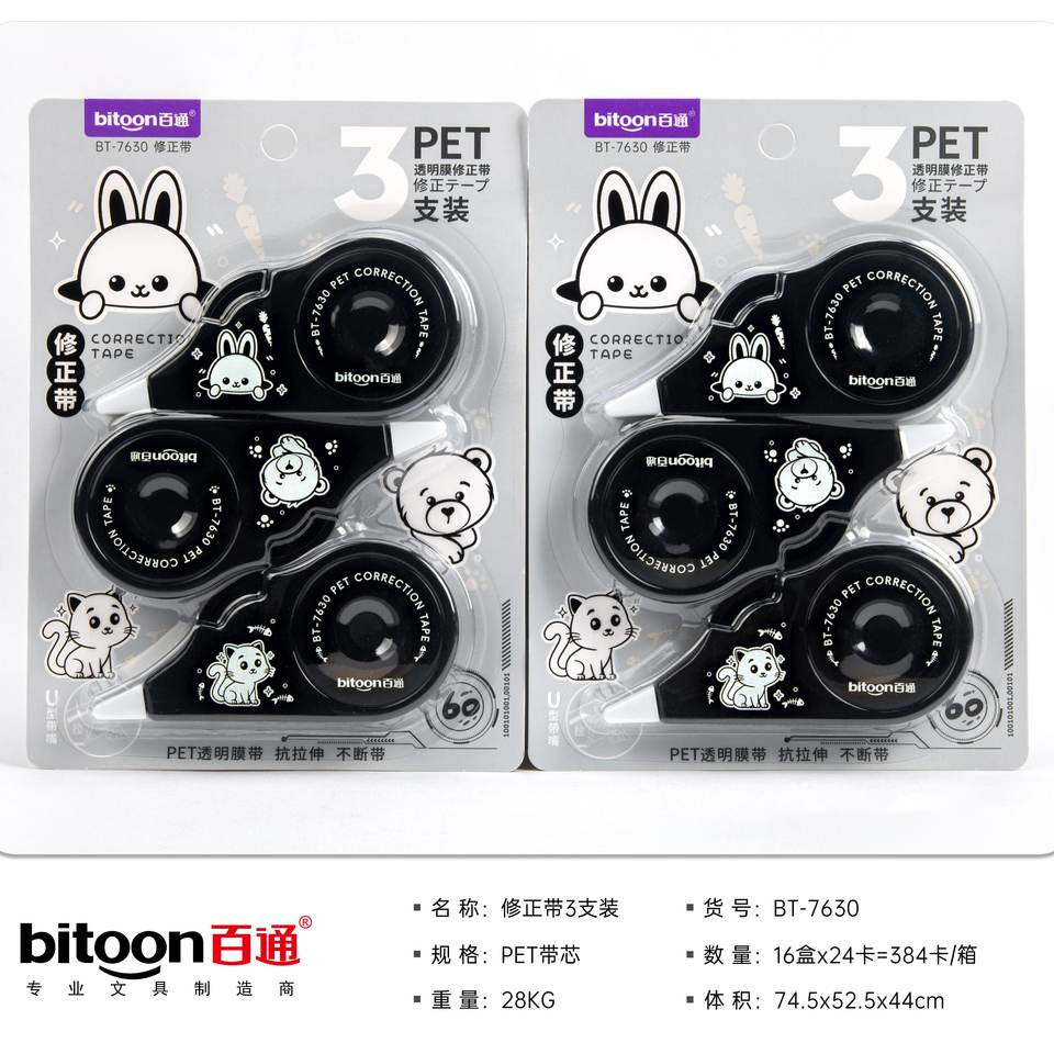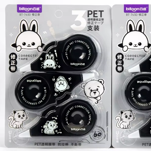 Bitoon Confezione da 3 Nastri Correttori da 24m, Cartone Animato Kawaii, Ecologici, Asciugatura Rapida, Non Tossici, Pellicola Plastica Liscia e Durevole per Scuola