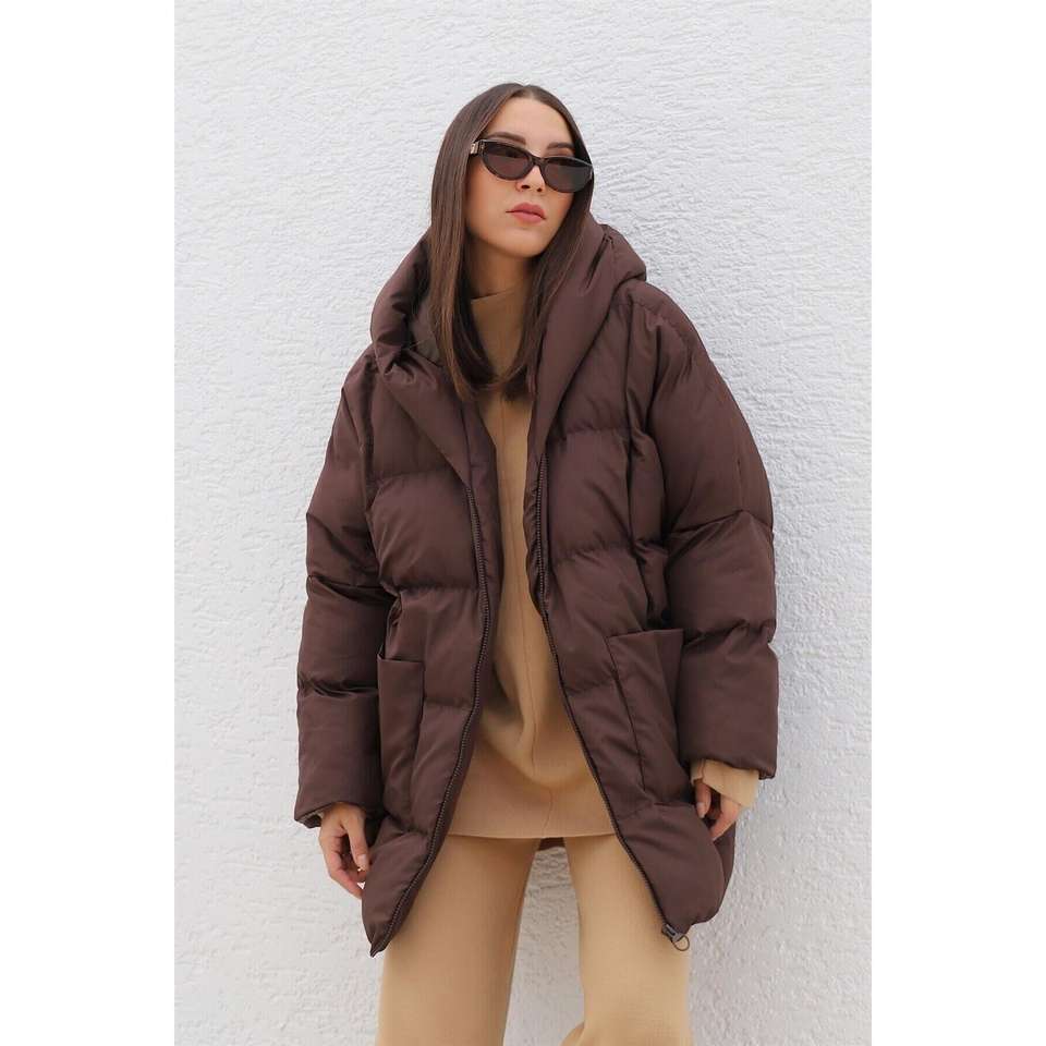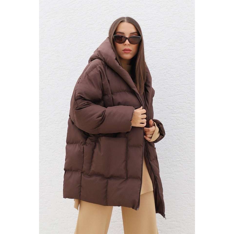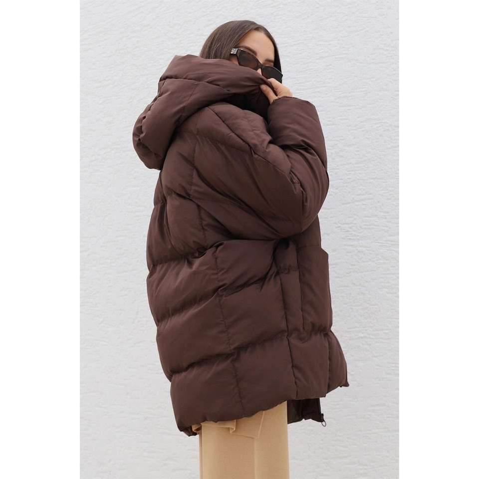 Bitter Brown Hooded Oversize Puffer Jacket