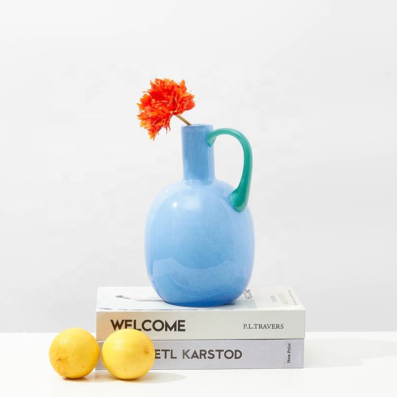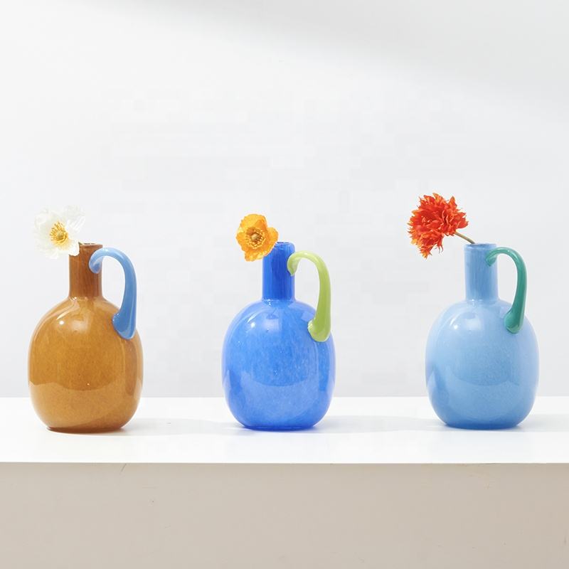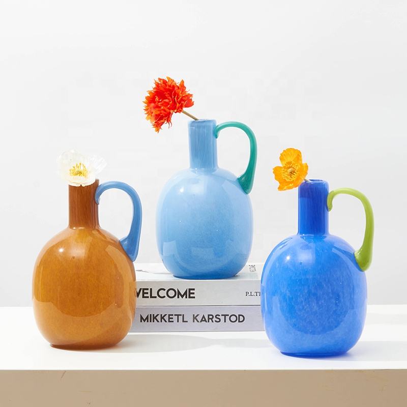 Product name:Vibrant Colorful Glass Vases with Curved Handle