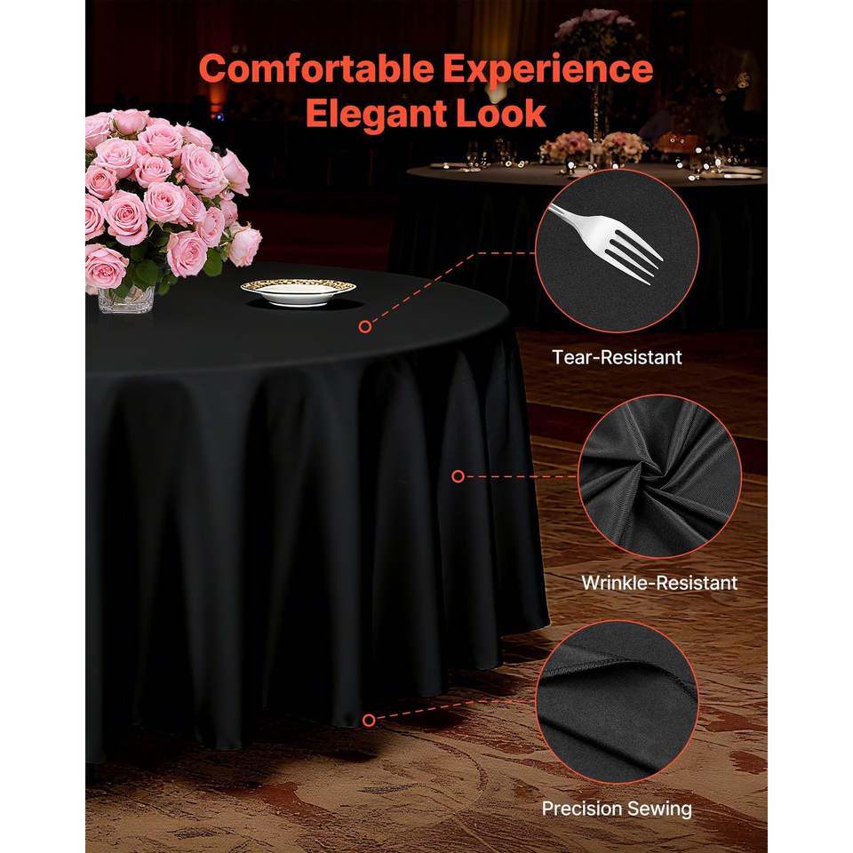 Tovaglie Nere Diametro 120 Pollici, Confezione da 6, Resistenti alle Macchie e alle Pieghe, Lavabili in Lavatrice, in Poliestere