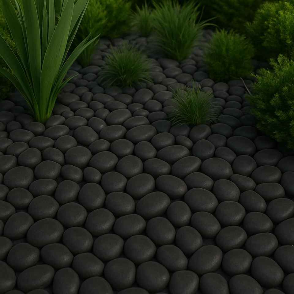 Black 2-5cm Cobbles & Pebbles 80pcs Plastic Rounded Matte Stones for Vases Aquariums Gardens