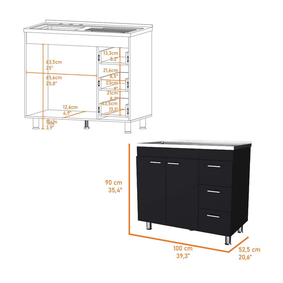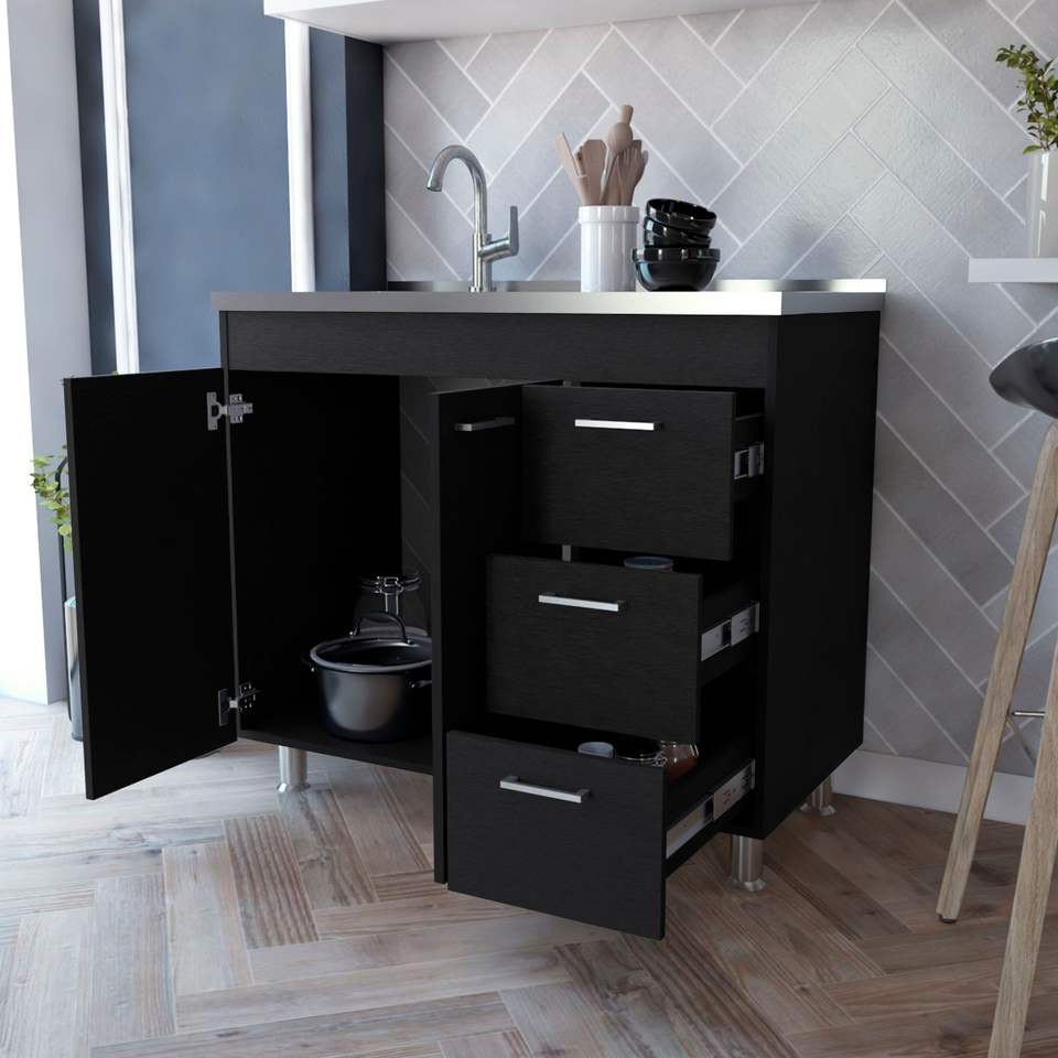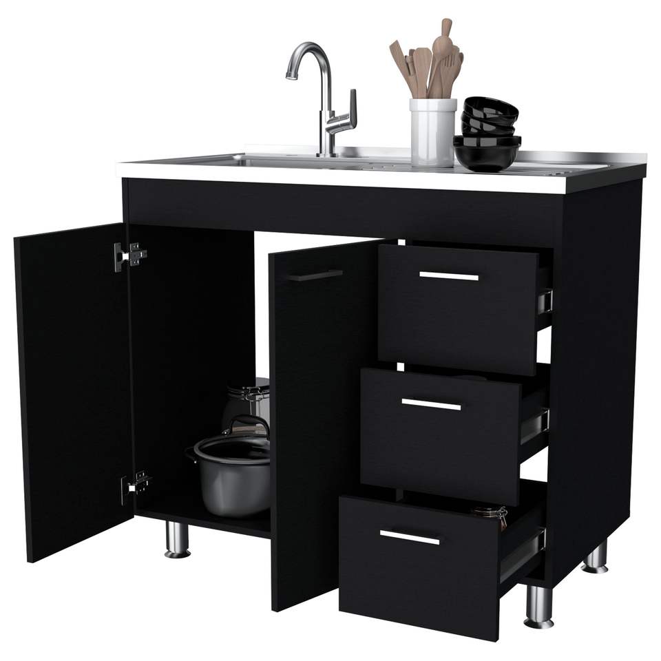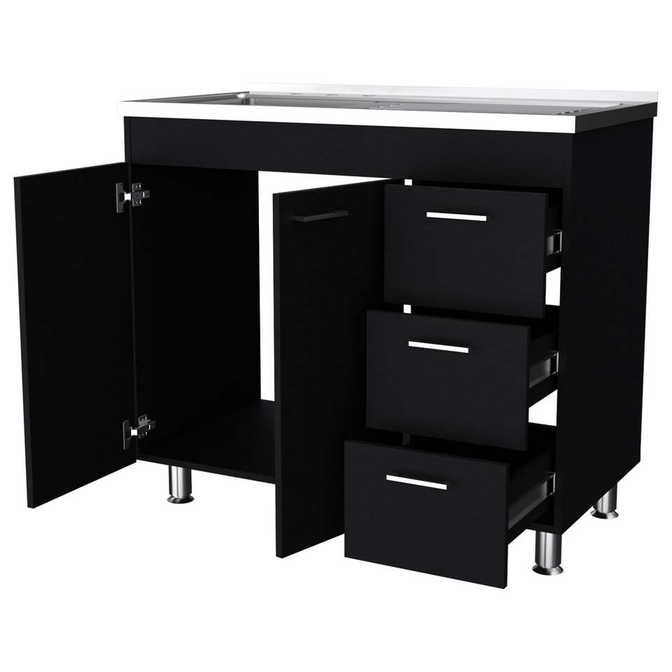 Mobile da Cucina Nero a 2 Ante e 3 Cassetti