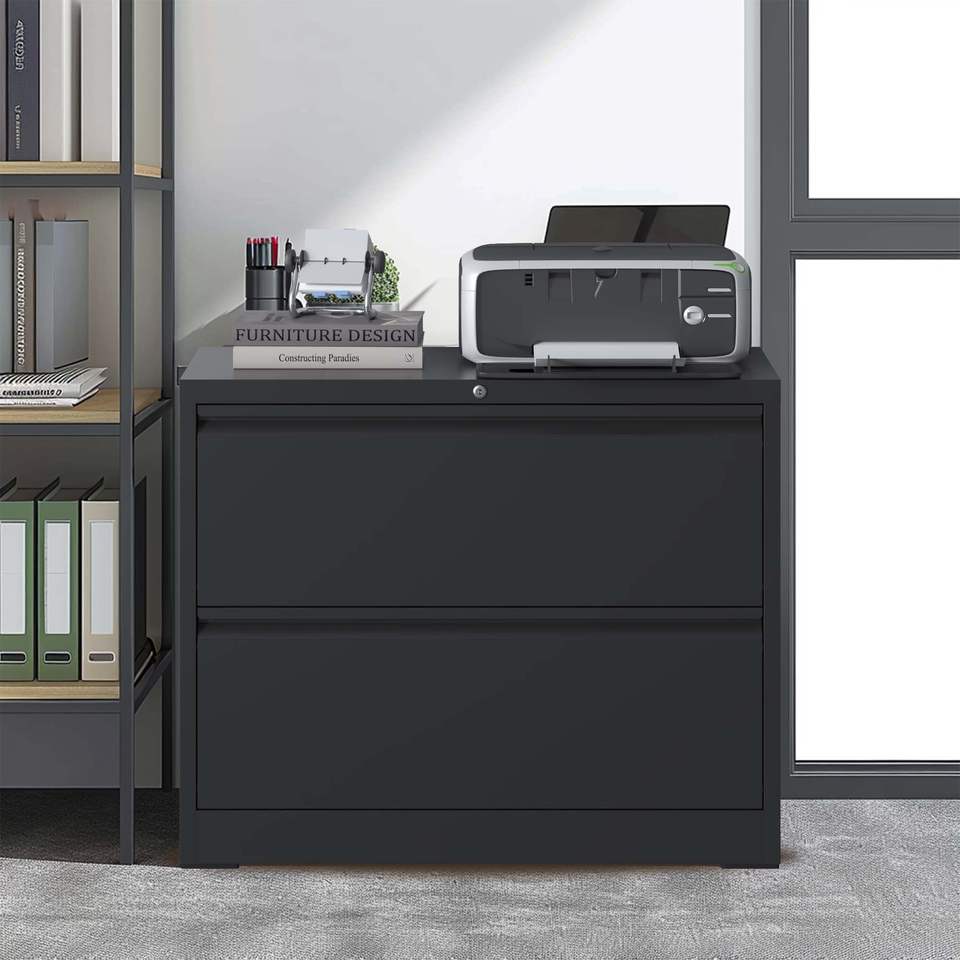 Armadietto in metallo con chiusura a chiave laterale a 2 cassetti nero per ufficio domestico, formato legale/lettera/A4/F4, con funzione di bloccaggio