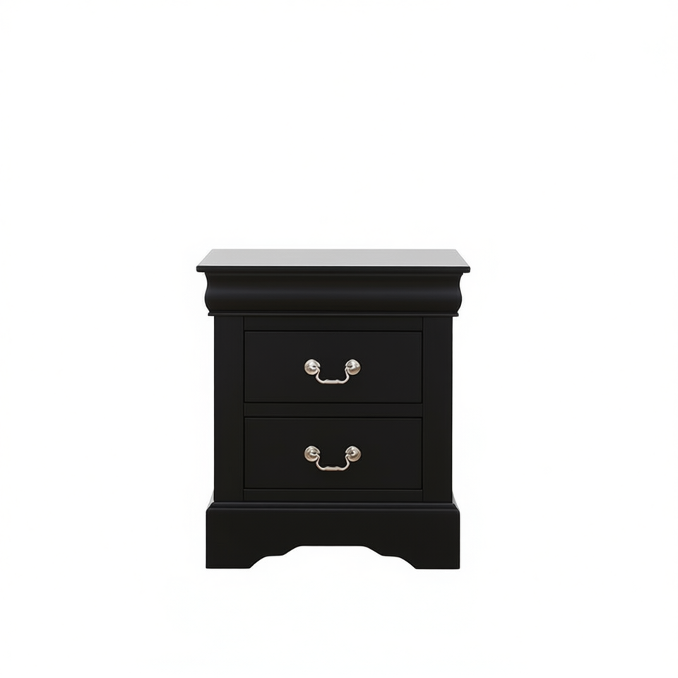 Modern Black 2 Drawer Nightstand Wood Top Traditional Bedroom Furniture Storage Home Decor