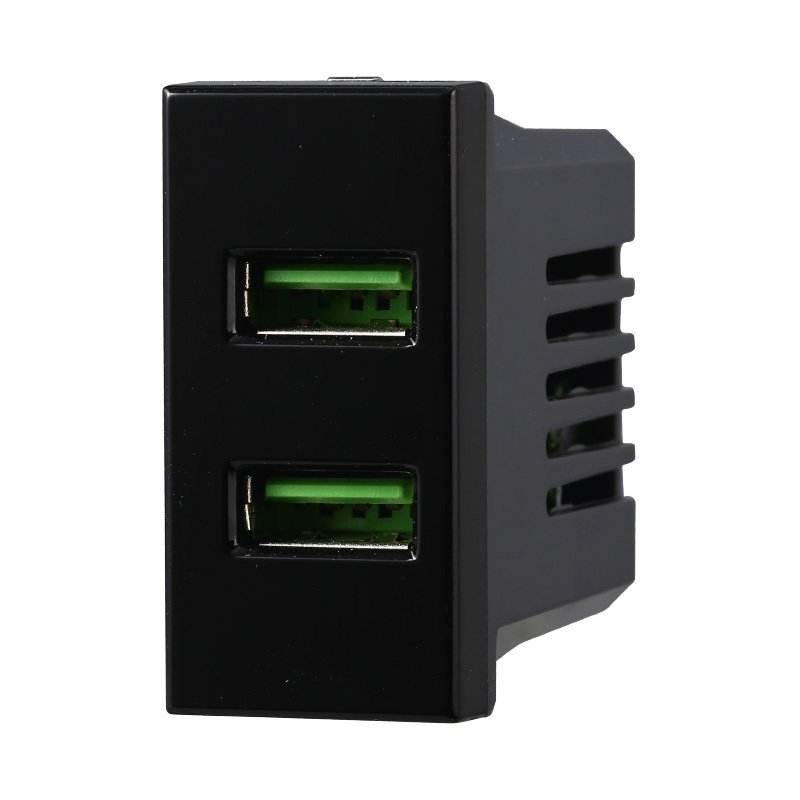 Modulo Presa di Ricarica USB Nero con 2 Porte USB-A 5V 2.1A Compatibile con Bticino Axolute