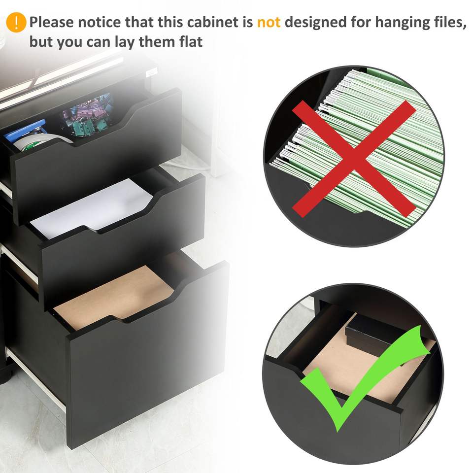 Mobiletto Portadocumenti Nero a 3 Cassetti con Ruote, Supporto per Stampante, Armadietto Verticale per Archiviazione