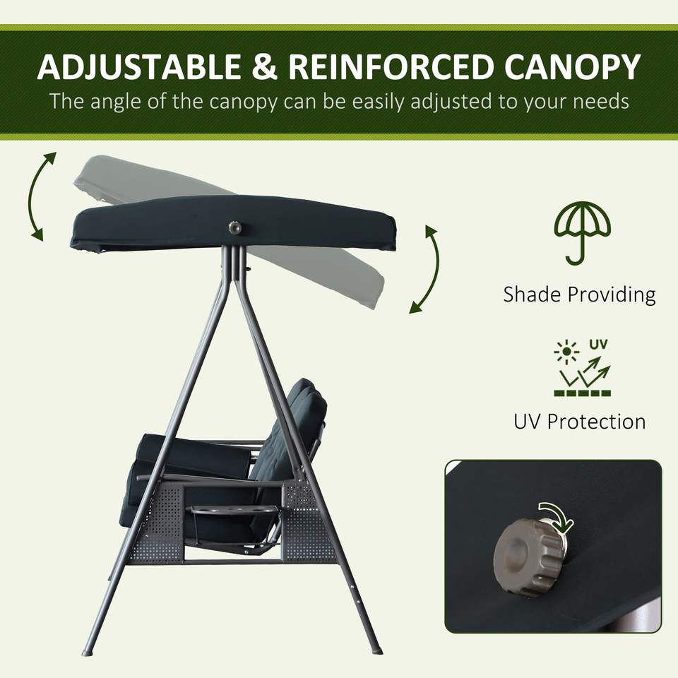 Dondolo da Giardino a 3 Posti in Acciaio Nero con Tettuccio e Sedili Imbottiti Comodi