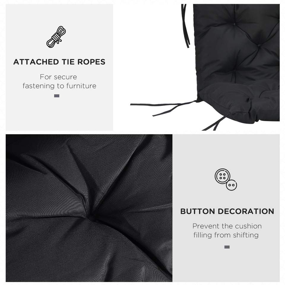Black 3-Seater Bench Swing Chair Replacement Cushions with Backrest Outdoor Seat Pads Outdoor Pillows & Cushions