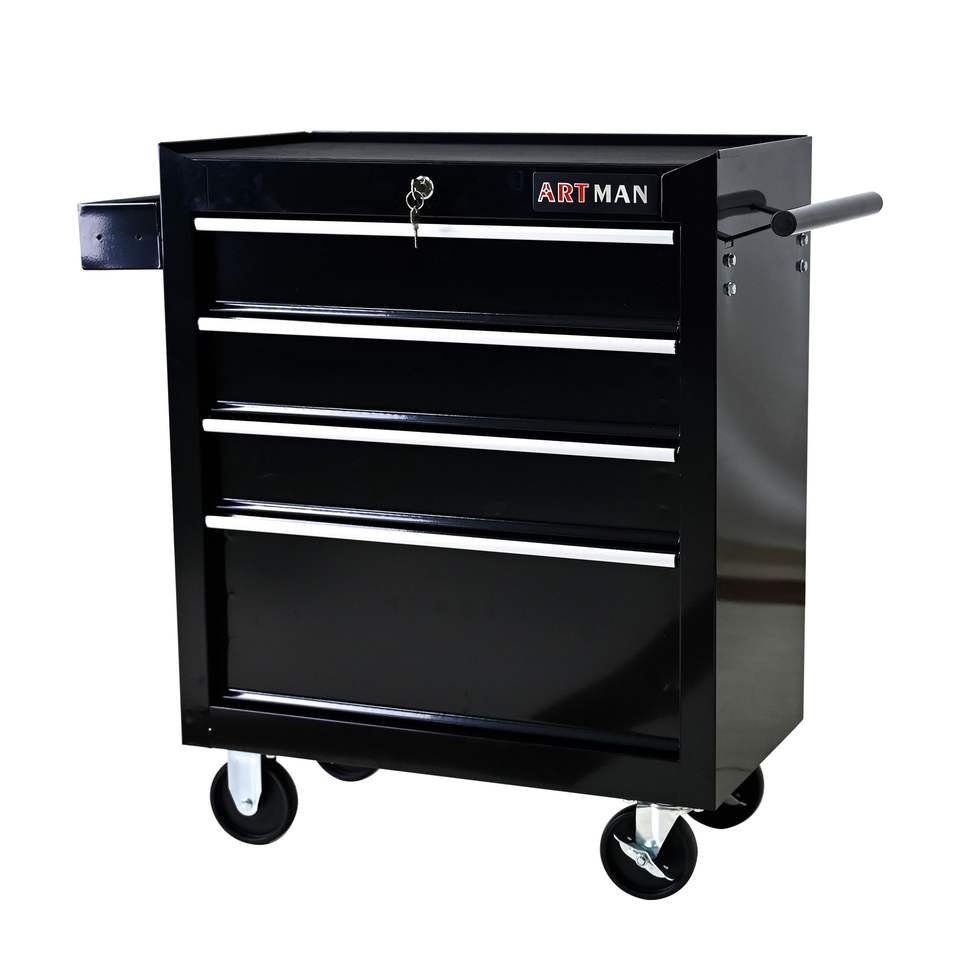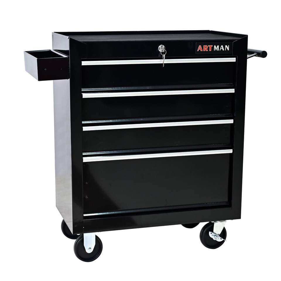Carrello Portautensili Nero a 4 Cassetti Multifunzionale con Ruote, Soluzione Pratica per lo Stoccaggio