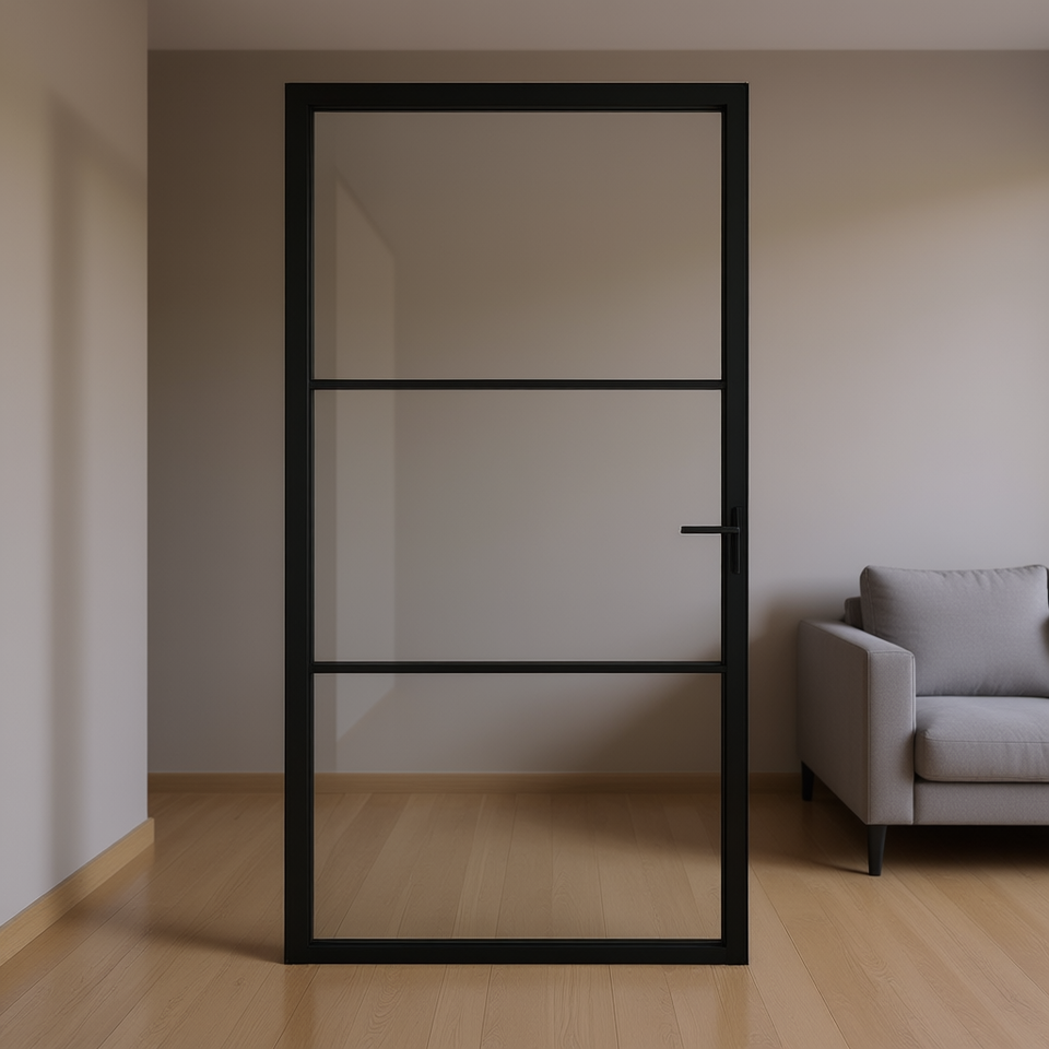 Black ESG Glass Interior Slab Door 40.4x79.3 Inches Minimalist Design Manual Operation Finished Surface