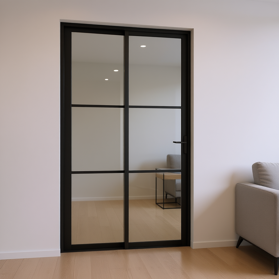 Porta Interna in Vetro Nero 40.4x79.3 Pollici Design Minimalista Apertura Laterale Superficie Rifinita