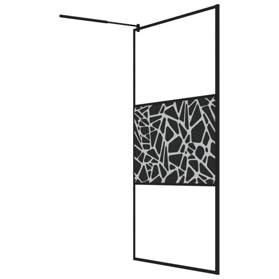 Black 45.3"x76.8" Walk-in Shower Wall with Shelf ESG Glass and Aluminum Door