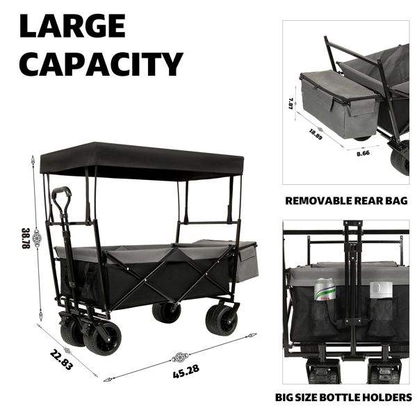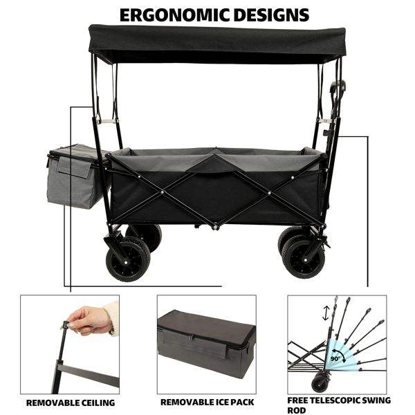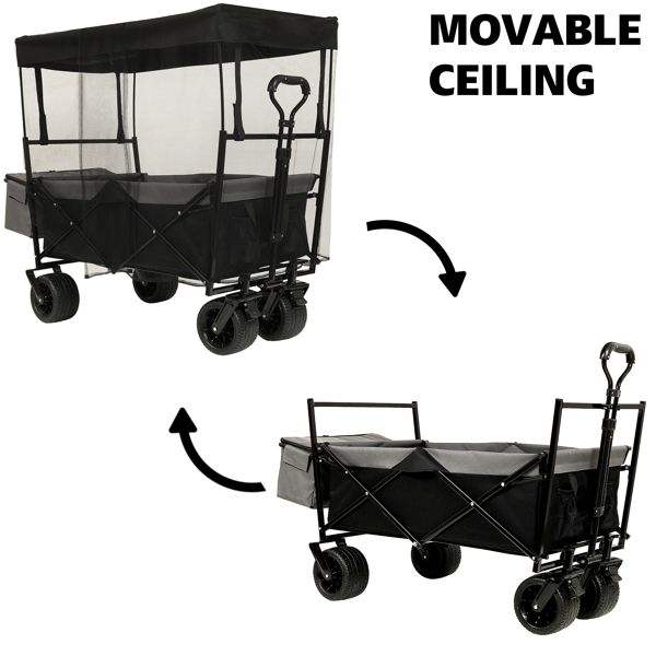 Passeggino nero pieghevole 480 libbre 7 "ruote fuoristrada leggero tettoia pieghevole per giardino sportivo da campeggio